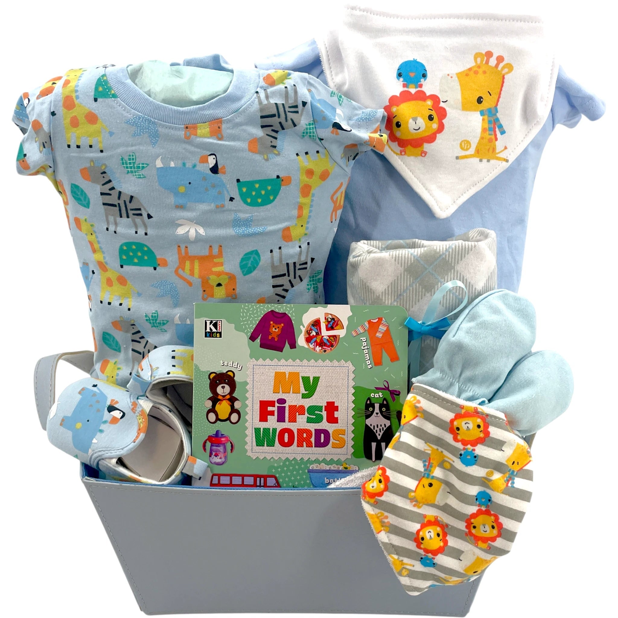 Beyond clothing, this baby basket includes the “My First Words” baby book, a keepsake that helps foster early bonding and storytime fun. Parents will appreciate the balance of practical essentials and a meaningful gift that grows with their child.