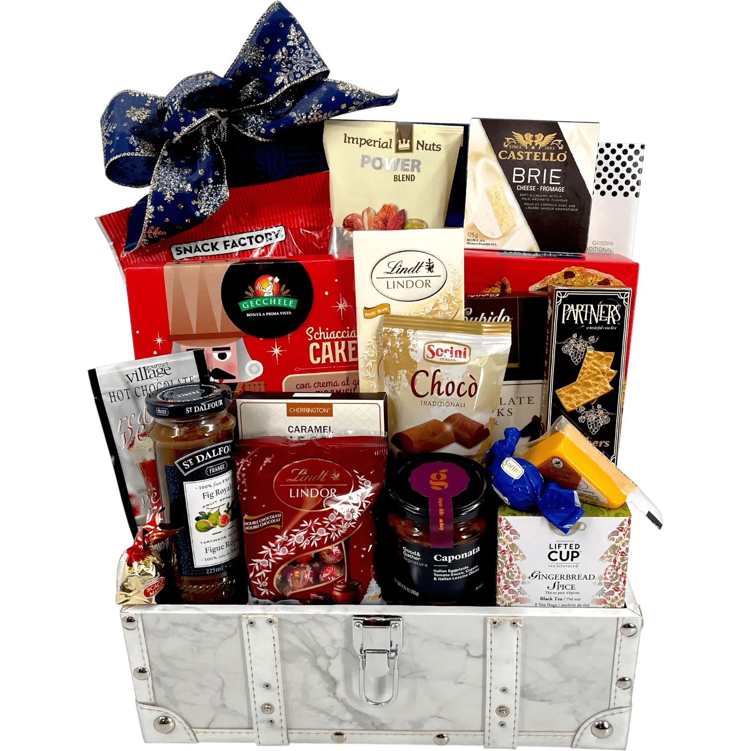 This holiday food gifts assortment features Italian baked specialties, smooth chocolates, savoury accents, and beautifully crafted flavours. From crisp biscotti and rich caramel cakes to aromatic teas and soft cheeses, every item brings comfort and indulgence to festive celebrations across Vancouver, Calgary, and beyond.