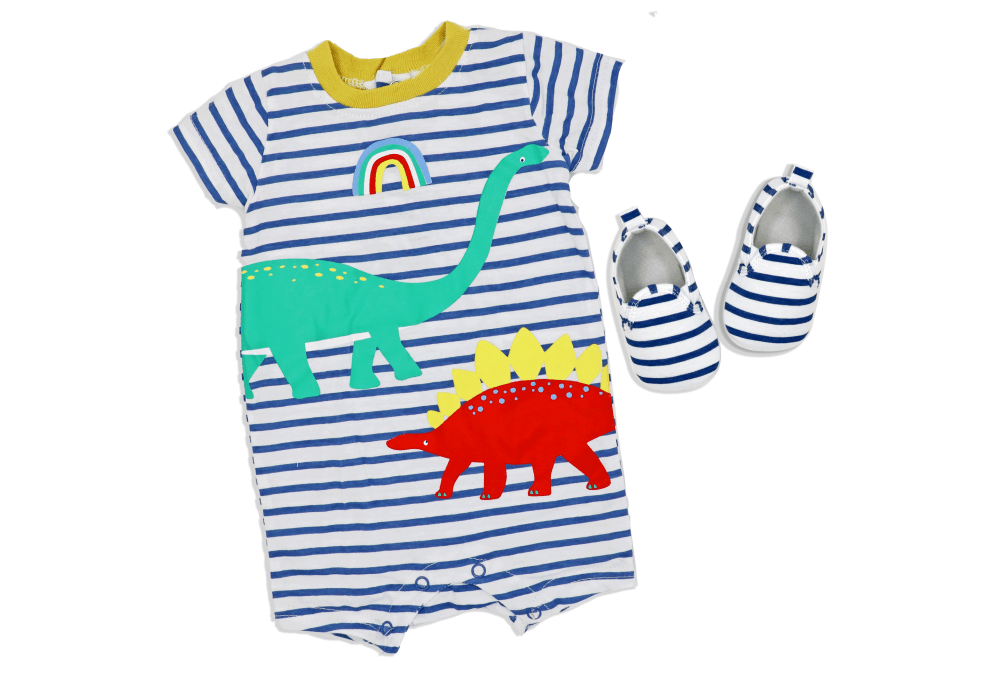 Conçu pour allier mignonnerie et praticité, cet ensemble pour bébé comprend un body en coton doux à motif « Petit Dino », idéal au quotidien. Des chaussons à rayures bleues et blanches gardent les petits pieds bien au chaud, tandis qu'un bavoir bandana à rayures jaunes apporte style et propreté aux repas. Trois débarbouillettes facilitent la vie des parents en simplifiant et en accélérant le nettoyage.
