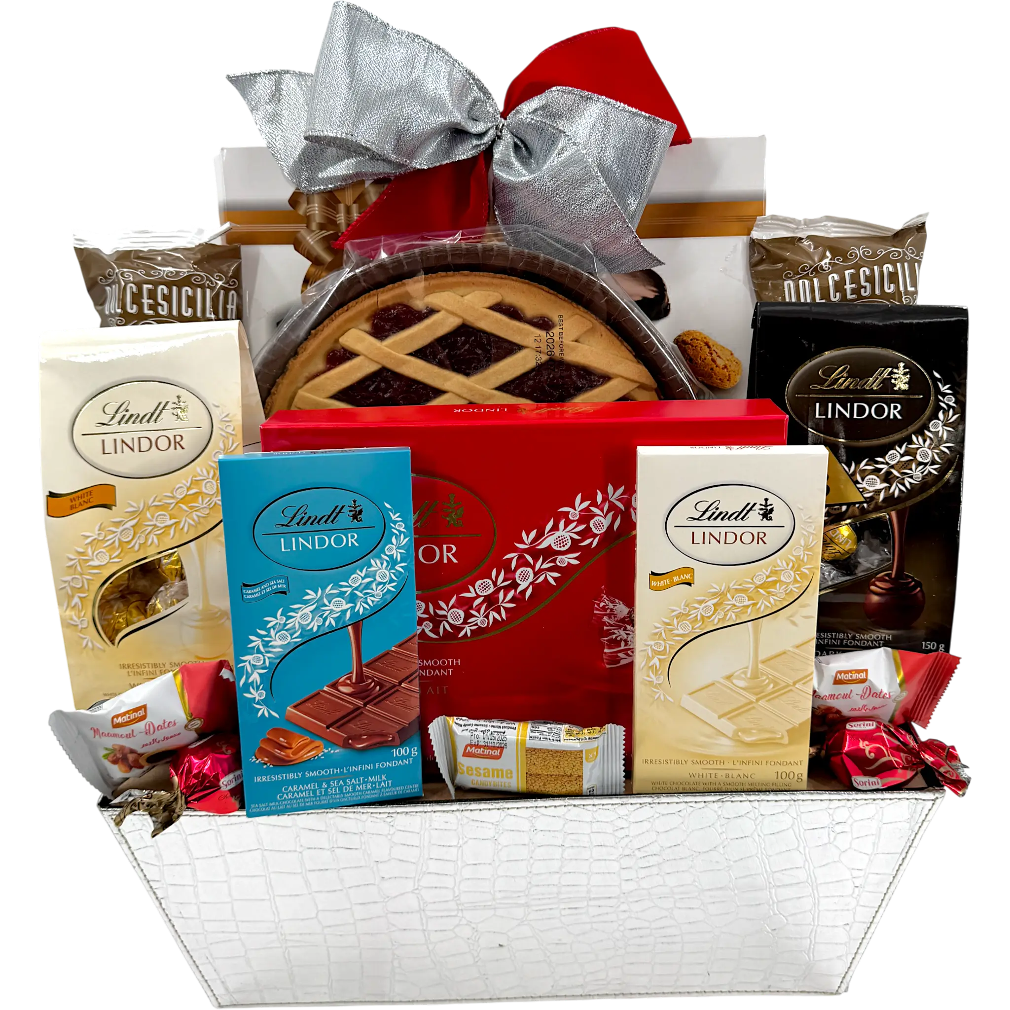 Présenté dans un élégant panier en simili cuir argenté, ce cadeau est idéal pour North York, Thornhill et les entreprises de tout le pays. Livraison assurée partout au Canada . Un geste raffiné conçu pour exprimer votre gratitude, renforcer les liens et sublimer chaque instant des Fêtes.